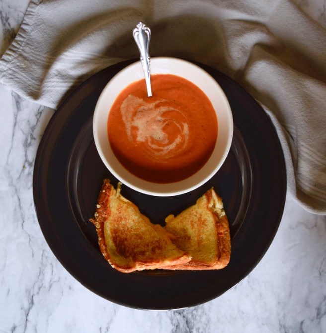 Let me say it, I LOVE SOUP! Unfortunately my husband doesn’t…😫 So, I frequently make myself soup for lunch. Most of the time I throw it together before work and have my lunches for at least a few days. Today I made Roasted Tomato Bisque. It sounds fancy but it’s really simple and goes together quickly!