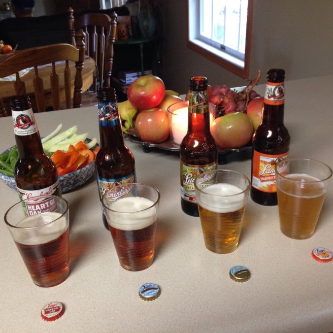 They brought a Leinenkugel fall variety pack so we decided to do a taste test. The opinions were as follows: Heart of Oak-smells like lake water but taste is smooth, Oktoberfest -smooth, slightly sweet, hint of caramel, Helles Yeah- Helles No! Hoppy and bitter, Harvest Patch Shandy-pumpkin pie in a glass, gingery.