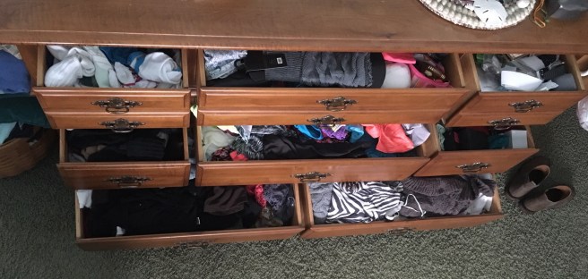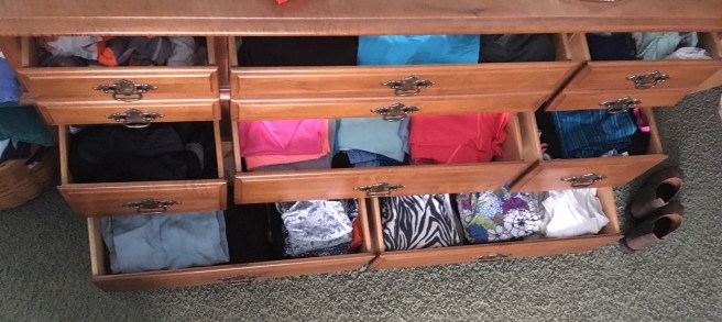 Each drawer did have a category…sport socks, dark socks, sweaters, workout clothes, bathing suits and misc…