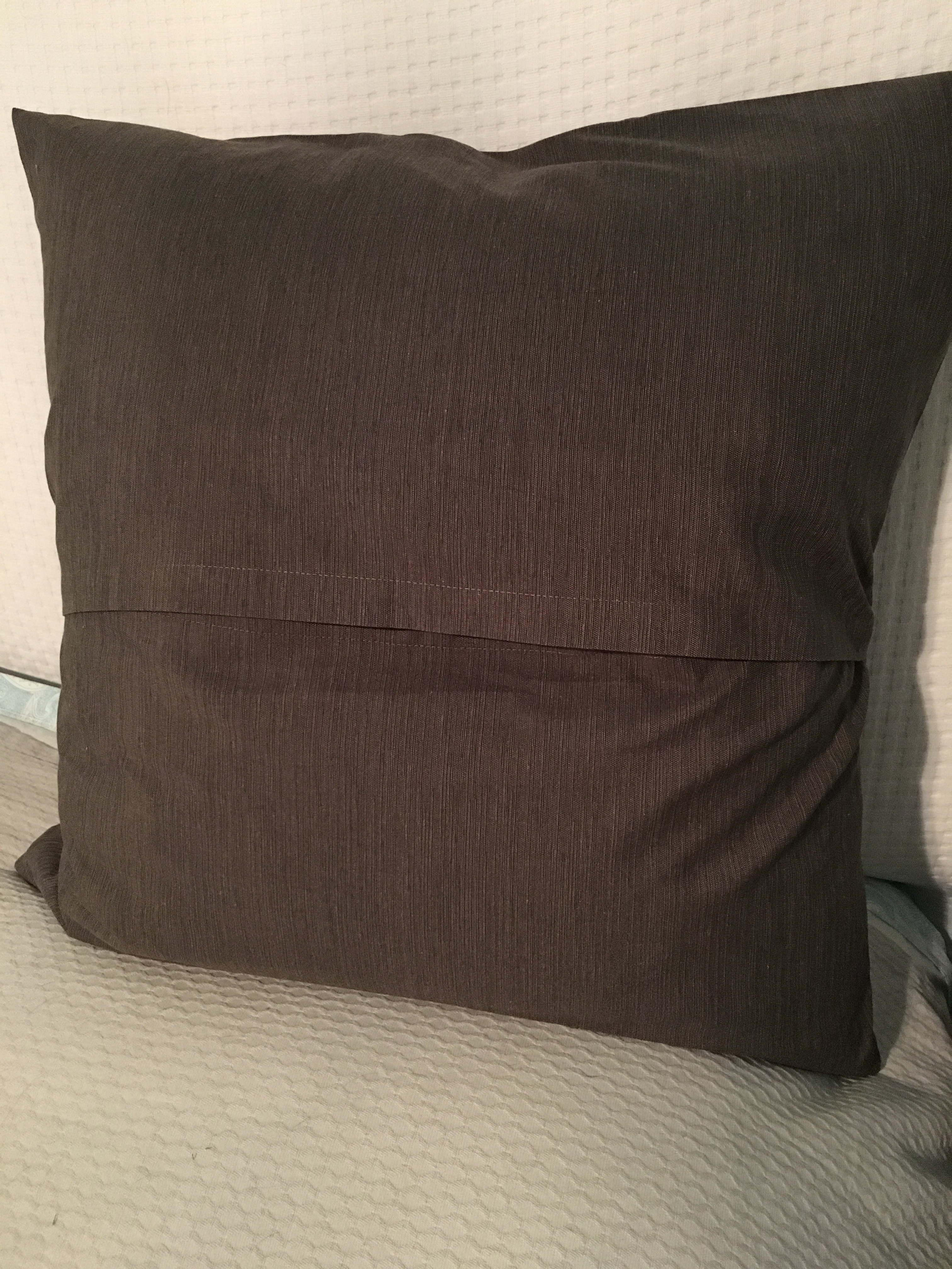 Now all there is to do is turn the sham right side out, press and stuff it with the form (if these were going to be on a sofa or used for more than decoration I would recommend adding Velcro to the overlap to keep it closed)