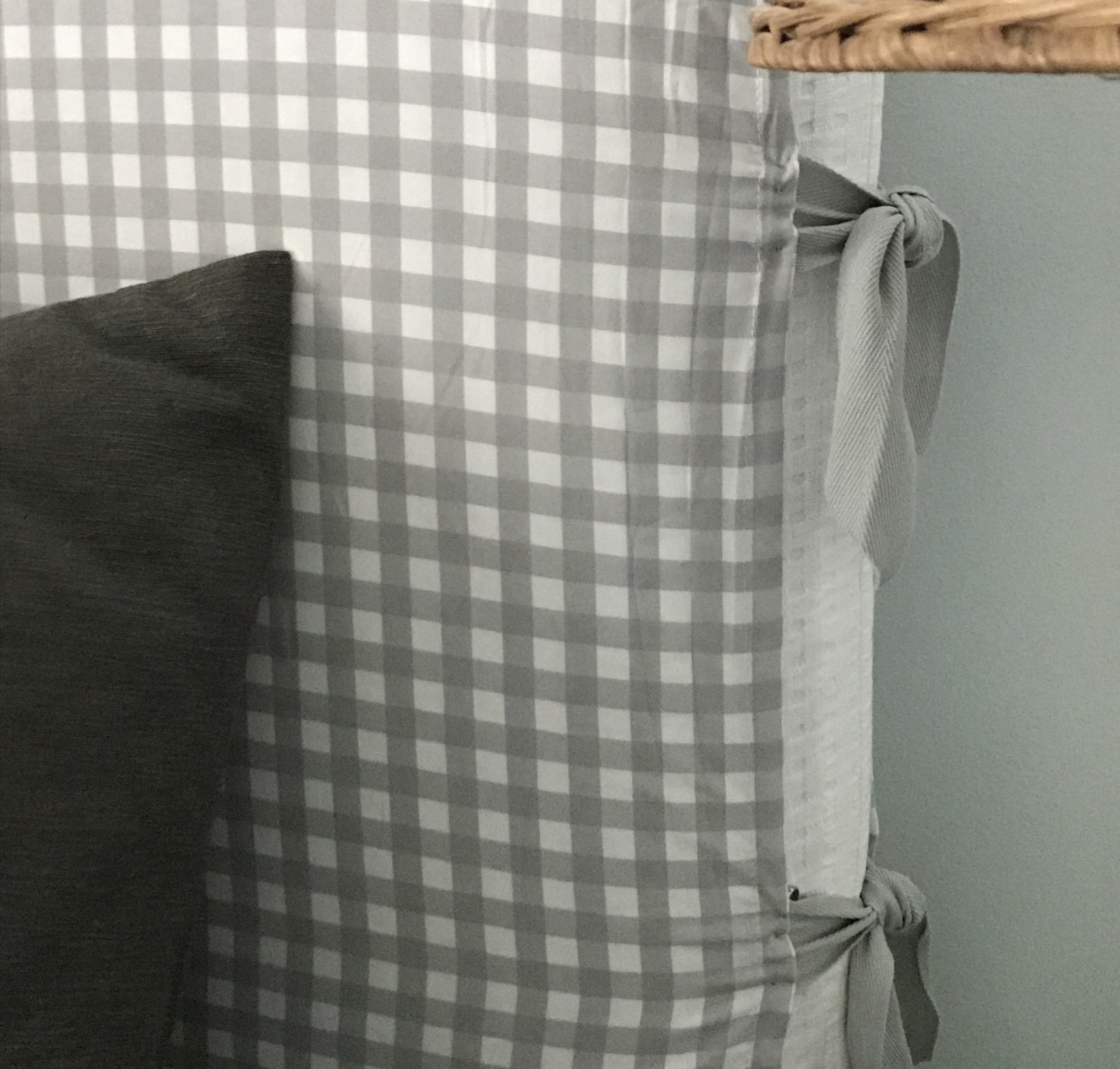 I am in love with buffalo check and have been looking at fabric to cover it with. As you know, I am big into using curtain panels or shower curtains as fabric for home decor projects. It’s usually cheaper than buying yardage and its good quality fabric and normally wider too! The easiest thing to cover it with is a shower curtain sewn together! We have a queen size bed and I diy’d the headboard several years ago. The shower curtain is perfect size and is relatively inexpensive. But I haven’t been able to find what I was looking for… so I was grocery shopping the other day, at Meijer, and came across a twin sheet set on clearance in this small buffalo check for $6.
